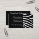 Eine Visitenkarte im eleganten, klassischen und stilvollen Design mit Zebradruck in Schwarz und Weiß. Ideal für einen Friseur- und Schönheitssalon.