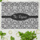 Dieses elegante Damastmuster ist im Schwarzen auf Weiß erfolgt. Ein schwarzes Oval hält Ihr persönliches Monogramm oder Namen der Braut und des Bräutigams. Nicht alle Produkte haben, den Monogramrahmen aber passen im eleganten schwarzen barocken Muster zusammen.