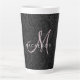Elegante moderne Schwarz-Floral Botanischer Rosa-Script Monogram Latte-Tasse. Eine elegante Rosa-Schriftzeichen-Monogramm kombiniert mit einem weißen San-Serif-Schriftart verleiht dem Ganzen ein zeitgemäßes Aussehen.