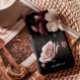 Dieses iPhone Gehäuse zeichnet sich durch ein schönes, elegantes Foto aus Weiß, Rosa und Bordeaux-Blume auf einem schwarzen Hintergrund aus. Personalisieren Sie es mit Ihrem Namen, Set in einem modernen, einfachen, weißen Schriftart. Eine elegante, schicke Telefonzelle.