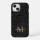 Elegante Black Floral Gold Script Monogram iPhone 15 Fall.