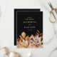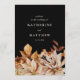 Dieses elegante Hochzeitsfeier-Programm bietet schöne Aquarellbilder in Erdtönen auf einem schicken schwarzen Hintergrund mit Elfenbeintypografie. Zusammen schaffen diese Elemente ein elegantes Hochzeitsprogramm, das perfekt für eine Herbsthochzeit ist. Dieses Design koordiniert mit unserer eleganten Hochzeitssuite im Herbst (siehe Sammlung für mehr).