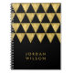 Schwarzes Notizbuch, das ein elegantes Imitatgoldfolien-Dreieckmuster kennzeichnet, das Sie mit Ihrem Namen personifizieren können. Groß für Schule oder Büro.