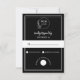 Elegante schwarze Linienzeichnung Monogramm-Hochzeit-RSVP-Karte. Diese moderne und minimalistische Antwortkarte zeigt einen zarten botanischen Kranz in Weiß auf schwarzem Hintergrund, perfekt für Paare, die eine elegante und zeitlose Hochzeitspapeterie suchen. Der klare weiße Text bietet Platz für Gastnamen und klare Optionen, um "mit Freude anzunehmen" oder "bedauerlicherweise abzulehnen", neben einer Aufforderung zur Angabe der Anzahl der teilnehmenden Gäste. Sie ist so gestaltet, dass sie nahtlos mit Ihren Hochzeitseinladungen koordiniert werden kann und bietet eine stilvolle und praktische Möglichkeit für Gäste, auf die Einladung zu antworten. Die sauberen Linien und die klassische Schriftart sorgen für ein gepflegtes Aussehen, das jedes moderne Hochzeitsthema ergänzt.