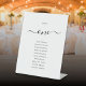 Elegantes Schwarzes Script-Tischnummer-Sitzdiagram Sockelschild