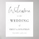 Elegantes Schwarzes Script Weiß Willkommen bei Hochzeit. Willkommen steht ganz oben in einem modernen Set-Skript und die Erholung des Textes können Sie leicht personalisieren. Kann über die Option Bearbeiten in beliebig viele Farben Ihrer Wahl geändert werden.