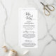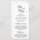Mr. and Mrs., Elegant Modern Romantic Black Script, Wedding Zeremony Programm Karte. Es ist mit Scrollakzent entworfen, der personalisiert werden kann mit benutzerdefiniertem/personalisiertem Text für Ihr Brautparty, Zeremonie Details, Gedenkhinweise und Dankeschön-Nachricht. Wenn Sie weitere Programmkarten-Typen und -Größen suchen, durchsuchen Sie bitte unseren passenden Programmkartenabfrageabschnitt.