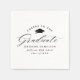 Elegante Servietten aus Abschluss mit einer Graduationskappe mit dem Satz "Cheers to the Graduate" in einem schwarzen Kalligrafieschrift auf weißem Hintergrund. Personalisieren Sie die modernen Abschluss-Servietten mit dem Namen, dem Schulnamen und dem Abschluss Jahr. Die einfachen Abschluss-Servietten sind ideal für Ihr High School- oder Uni-Abschluss-Party.