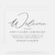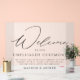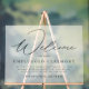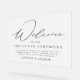 Einfaches und modernes, nicht gestopftes Hochzeitszeichen mit "Welcome" in einem modernen, schwarzen Kalligrafieschrift mit Imitaten mattiertem Acrylhintergrund. Passen Sie das Acryl-Hochzeitszeichen ohne Stecker an, indem Sie eine benutzerdefinierte Nachricht und Ihre Namen hinzufügen. Das Schwarz-Weiß-Zeremonie-Zeichen wurde entworfen, um sich mit unserer Hochzeitskollektion "Moderne Elegance" abzustimmen und ist in anderen Farben erhältlich.