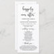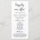 Herzlich willkommen in unserer Hochzeitstypografie, der eleganten, modernen Romantik-Schwarz-Schrift, dem Programm für Hochzeitsfeier. Es ist mit Scrollakzent entworfen, der personalisiert werden kann mit benutzerdefiniertem/personalisiertem Text für Ihr Brautparty, Zeremonie Details, Gedenkhinweise und Dankeschön-Nachricht. Wenn Sie weitere Programmkarten-Typen und -Größen suchen, durchsuchen Sie bitte unseren passenden Programmkartenabfrageabschnitt.