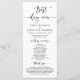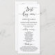 Herzlich willkommen in unserer Hochzeitstypografie, der eleganten, modernen Romantik-Schwarz-Schrift, dem Programm für Hochzeitsfeier. Es ist mit Scrollakzent entworfen, der personalisiert werden kann mit benutzerdefiniertem/personalisiertem Text für Ihr Brautparty, Zeremonie Details, Gedenkhinweise und Dankeschön-Nachricht. Wenn Sie weitere Programmkarten-Typen und -Größen suchen, durchsuchen Sie bitte unseren passenden Programmkartenabfrageabschnitt.