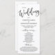 Herzlich willkommen in unserer Hochzeitstypografie, der eleganten, modernen Romantik-Schwarz-Schrift, dem Programm für Hochzeitsfeier. Es ist mit Scrollakzent entworfen, der personalisiert werden kann mit benutzerdefiniertem/personalisiertem Text für Ihr Brautparty, Zeremonie Details, Gedenkhinweise und Dankeschön-Nachricht. Wenn Sie weitere Programmkarten-Typen und -Größen suchen, durchsuchen Sie bitte unseren passenden Programmkartenabfrageabschnitt.