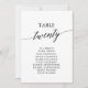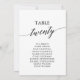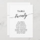 Diese eleganten, schwarzen Tischnummer-20-Sitzkarten eignen sich perfekt für eine Hochzeit. Das neutrale Design besticht durch eine minimalistische Karte, die mit romantischer und skurriler Typografie dekoriert ist. Die Karte druckt auf der Vorder- und Rückseite (beidseitig).