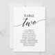 Diese eleganten, schwarzen Tischnummer-2-Sitzkarten eignen sich perfekt für eine Hochzeit. Das neutrale Design besticht durch eine minimalistische Karte, die mit romantischer und skurriler Typografie dekoriert ist. Die Karte druckt auf der Vorder- und Rückseite (beidseitig).