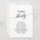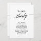 Diese eleganten, schwarzen Tischnummer-30-Sitzkarten eignen sich perfekt für eine Hochzeit. Das neutrale Design besticht durch eine minimalistische Karte, die mit romantischer und skurriler Typografie dekoriert ist. Die Karte druckt auf der Vorder- und Rückseite (beidseitig).
