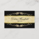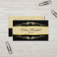 Elegante Visitenkarte, mit einem festen schwarzen Hintergrund, mit einem Streifen des goldenen gelben Blumenmusters, auf der Front und Rückseite der Karte. Ein dekorativer goldtone Streifen trennt die Hintergrundfarben. Grafiken einer tan Rose blühen verziert den schwarzen Teil der Hintergründe. Schwarzer Text ist bereit, mit Ihren Informationen zu personifizieren.