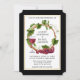 Moderne, elegante Wasserfarben Trauben und Reben Holzreath Einladung - Schwarzer Hintergrund und Goldrahmen