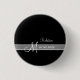 Ein eleganter Designerhochzeits-Party-Identifizierungsknopf mit einem glatten schwarzen Hintergrund und einem modernen mattierten weißen Streifen. Personifizieren Sie dieses bezaubernde mit Monogramm Hochzeits-Party-Verhältnis-Identifikations-Beispiel: Mutter der Braut, des Vaters des Bräutigams, des etc.