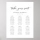Klassische Kalligrafie Script Hochzeitssitzplan. Begrüßungszeichen. Personalisierte Sitzkarte für 60 Gäste. Klicken Sie einfach auf den Link, um den Text anzupassen, der unter dem Bereich für die Textpersonalisierung rechts angezeigt wird, und wählen Sie Ihren eigenen Farbhintergrund aus. Dieses Schild Poster-Template macht es einfach und schnell, atemberaubende Ergänzungen Ihrer Hochzeitsdekoration zu schaffen. Die Zeichen können vergrößert werden, es gibt viele Größen zur Auswahl, sowie Optionen für die individuelle Gestaltung und Anpassung.