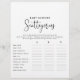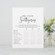 Dieses elegante Drehbuch Baby Duschskategorien-Spiel ist ein perfektes Unterhaltungsprogramm für eine rustikale Babydusche. Das Design besticht durch einen wunderschönen Kalligraphie-Schriftart in weißem Hintergrund.