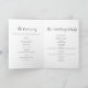 Fügen Sie Ihrer Zeremonie eine zeitlose Eleganz hinzu mit diesem Schwarz-Weiß-Hochzeitsprogramm mit schicken Skriptüberschriften und sauberer, leicht lesbarer Typografie. Dieses gefaltete Programm ist perfekt für klassische, formelle oder moderne Hochzeiten geeignet und enthält Abschnitte für die Zeremonie und die Details der Hochzeitsfeier. Das minimalistische Design behalte den Fokus auf Ihre Feier und bewahrt gleichzeitig einen raffinierten und polierten Look. Passen Sie Ihre Hochzeitsdetails an, um einen Sake zu schaffen, den Ihre Gäste schätzen werden.
