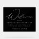 Einfaches und modernes, nicht gestopftes Hochzeitszeichen mit "Welcome" in einem modernen, weißen Kalligrafieschrift mit schwarzem Acrylhintergrund. Passen Sie das Acryl-Hochzeitszeichen ohne Stecker an, indem Sie eine benutzerdefinierte Nachricht und Ihre Namen hinzufügen. Das Schwarz-Weiß-Zeremonie-Zeichen wurde entworfen, um sich mit unserer Hochzeitskollektion "Moderne Elegance" abzustimmen und ist in anderen Farben erhältlich.