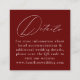 Ermöglicht es den Gästen, mit diesen modernen QR-Code Hochzeitsdetails Einzel-Karten einfach mehr Informationen über Ihre Hochzeit zu finden. Die elegante Hochzeitsdetails-Karte zeigt "Details" in einem weißen Kalligraphieskript, das im Kontrast zu einem bordeauxfarbenen Hintergrund steht. Personalisieren Sie die Karte mit Ihrer Hochzeitswebsite-Adresse und individuellem Text. Auf der Rückseite der Bordeaux-Details-Karte finden Sie einen QR-Code, mit dem Sie nach Informationen über Hotelunterkünfte, Anfahrtsbeschreibung, Kleidungscode, Online-UAWG usw. suchen können.