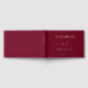 Dieses elegante burgundische Gästebuch mit roten Hochzeitstiteln bietet Ihnen die Wahl zwischen echter Goldfolie, Silber oder Rose, Ihren Namen in klassischer Serifentypografie, verbunden mit "und" in einem schicken Drehbuch mit Swashes und Ihrem Hochzeitstag. Personalisieren Sie den Titel auf der Wirbelsäule.