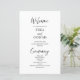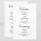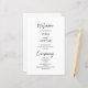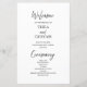 Herzlich willkommen bei der Zeremonie mit unserem modernen und stilvollen Hochzeitsprogramm. Das elegante Design mit schwarzer handgeschriebener Schrift und klassischer Schrift auf weißem Hintergrund macht dieses Programm perfekt für formelle Hochzeiten. Sie können auch Text- und Hintergrundfarben an Ihr Thema anpassen. Machen Sie Ihren Hochzeitstag mit unserem modernen Hochzeitsprogramm unvergesslich. Passen Sie es an, um Ihren Stil zu reflektieren und einen bleibenden Eindruck auf Ihre Gäste verlassen. Bestelle noch heute!