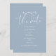 Diese elegante dusty Blue rett-the-date Einladung kann mit Ihren Informationen in chic Typografie mit Ihrem Hochzeitswebsite QR-Code und Details auf der Rückseite personalisiert werden. Entwickelt von Thisisnotme©