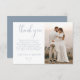 Diese schlichte, elegante Dankeschön-Karte zeichnet sich durch ein Foto und ein staubblaues Motiv aus. Das Foto dient nur zur Platzierung und kann durch ein beliebiges Foto ersetzt werden. Passen Sie den Text mit Ihrer persönlichen Danksagung an alle Ihre Hochzeitsgäste an. #weddingthankyou #dustybluewedding