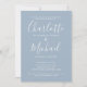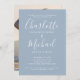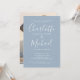 Diese elegante, moderne Einladungs-Party-Einladung mit ihren charakteristischen Stilnamen kann mit Ihren Informationen in schick weißer Schrift auf staubblauem Hintergrund und Ihrem besonderen Foto auf der Rückseite personalisiert werden. Entwickelt von Thisisnotme©