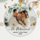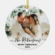 Elegantes Script Familienname Foto Frohe Weihnacht Keramik Ornament