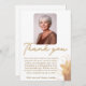 Elegantes Script Foliage Foto Geburtstag Dankeschön Karte. Geburtstagsparty danke Ihnen Karte mit einem eleganten Text "Danke" in einem trendigen Drehbuch und goldenen Blattdetails. Fügen Sie Ihr Foto hinzu und passen Sie den gesamten Text an.