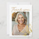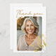 Elegantes Script Foliage Foto Geburtstag Dankeschön Karte. Geburtstagsparty danke Ihnen Karte mit einem eleganten Text "Danke" in einem trendigen Drehbuch und goldenen Blattdetails. Fügen Sie Ihr Foto hinzu und passen Sie den gesamten Text an.
