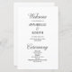 Die Einführung unseres klassischen minimalistischen Hochzeitsprogramms, das Ihnen eine Touch von Eleganz und Eleganz verleiht. Das elegante schwarze Drehbuch und die klassische Schrift auf weißem Hintergrund sind perfekt für feierliche Hochzeiten. Außerdem können Sie die Farben des Textes und des Hintergrunds anpassen, um Ihr Thema und Hochzeitsaufmacher anzupassen. Erstellen Sie die Hochzeit, von der Sie träumen, und machen Sie eine Aussage mit unserem klassischen minimalistischen Design. Bestellen Sie noch heute Ihren Urlaubstag und machen Sie Ihren Urlaubstag noch attraktiver!