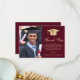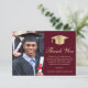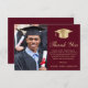 Eleganter bordeauxroter Abschluss Dankeschön-Karte mit einem Goldgrad-Kappe, ein Foto des Absolventen, "Danke" in einem klassischen Goldskript, und eine kundenspezifische Danksagung und den Namen des Absolventen in der modernen Serif Gold Typografie.