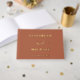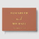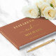 Dieses elegante Terracotta Hochzeitsgast-Buch enthält echte Goldfolie, Ihre Namen in klassischer Serifentypografie, verbunden mit "und" in einem schicken Skript mit Swashes, und Ihr Hochzeitsdatum. Sie können den Titel auf der Wirbelsäule personalisieren und Ihr Lieblings-Foto auf der Rückseite hinzufügen.