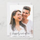 Moderne und minimale staubblaue Hochzeitseinladung mit der Einladung in eleganter weißer Typografie an der Vorderseite und dem Foto mit "Happily Ever After" in einem schicken Kalligrafieschrift mit Swashes und Vornamen und Hochzeitsdatum, verbunden mit einem Herz auf der Rückseite. Geben Sie Ihre Hochzeitswebsite-Adresse ein, um einen QR-Code für Ihre Gäste zu erstellen, um online zu scannen und um zusätzliche Hochzeitsdetails wie Unterkunft und Anfahrtsbeschreibung zu erhalten.