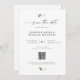 Ein elegantes und stilvolles Design besticht durch ein modernes Schriftzeichen Save the Date mit Eukalyptusgrün. Einfach mit Ihren Wunschdetails anpassen. Im Lieferumfang ist ein QR Code, um die URL Ihrer Hochzeitswebsite einzufügen, sodass Ihre Gäste weitere Details erhalten können.