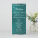 Dieses romantische Design besticht durch einen eleganten aquamarinen Hintergrund mit Glitzer-Rändern, Details zur Hochzeitsfeier und Dankeschön an der Vorderseite mit den Mitgliedern der Hochzeitsfeier auf der Rückseite. Auch erhältlich mit verschiedenen farbigen Hintergründen für Ihre Hochzeit Thema Farben. (Glitzer wird im Kunstwerk simuliert). Konzipiert, um sich mit der Hochzeitskollektion "Two Shall Become One - Hearts, Doves & Glitzer" abzustimmen. Klicken Sie zum Ändern der Details auf "Personalisieren". Um den Text zu verschieben oder die Textgröße, den Schriftart oder die Textfarbe zu ändern, klicken Sie auf "Klicken Sie, um den Text weiter anzupassen".
