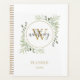 Elegantes Script Greenery Gold Monogram 2023 Planer
