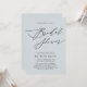Dusty Blue Elegant Script Moderne Minimalistisch Bridal Dusche Einladungskarte. Feiern Sie Ihren besonderen Tag mit dieser eleganten und wunderschönen Einladungskarte für Ihre Hochzeit, um Ihren besondere Anlass zu verschönern. Alle Texte sind so vorbereitet, dass Sie sie einfach und schnell mit Ihren eigenen Details personalisieren können.