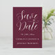 Moderne Foto Wedding "Save the Date" Card - Elegantes Script in Burgundy & Ivory Cream Ankündigen Sie Ihren großen Tag im Stil mit dieser minimalistischen, aber romantischen "Save the Date" Karte, mit einem reichen burgundischen Rotwein Hintergrund gepaart mit weicher Elfenbeincreme elegante Schrift Typografie. Dieses Design verbindet zeitlose Romantik mit moderner Einfachheit und schafft einen warmen und raffinierten ersten Eindruck für Ihre Hochzeitsgäste. Mit Zazzle's einfachen Editing-Tools können Sie ganz einfach mit Ihrem eigenen Foto, Ihren Namen und Ihrem Hochzeitsdatum personalisieren. Die Kombination aus modernem Schriftart und Ihrem Lieblings-Foto in der Verlobung macht diese Karte zu einer wahren Ankündigung, dass Ihre Gäste zu schätzen wissen. Dieses vielseitige Design ist perfekt für Paare, die eine klassische, aber zeitgemäße Hochzeitsästhetik suchen. Es bietet Anzug von Weinbergshochzeiten bis hin zu Winterfeiern. Originelle Kunstwerke und Layout von Künstlerin und Designerin Catherine Sweetman, exklusiv auf Zazzle erhältlich, sorgen dafür, dass Ihr "Save the Date" so einzigartig ist wie Ihre Liebe.