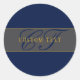 Elegantes Script Monogram Dark Navy Blue Gray & Go Runder Aufkleber