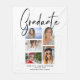 Das elegante Script Multi Foto Abschluss Graduate Fleece Blanket bietet fünf Ihrer Lieblings-Fotos Ihrer Uni oder High School Absolvent mit dem Wirblen modernen schwarzen kalligraphischen Skript-Overlay "Graduate". Einfache, stilvolle und stilvolle Abschluss-Sake-Geschenke. Erstellt von ©Evco Studio www.zazzle.com/store/evcostudio