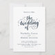 Elegantes Script Navy Blue und White Modern Weddin Einladung