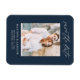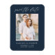 Verkünden Sie Ihre nächsten Nuptials mit diesem eleganten Script-Foto speichern Sie den Datums-Magneten. "Save the Date" wird in einem modernen, weißen Kalligrafieschrift über dem Foto Ihrer Verlobung auf einem marinen Hintergrund angezeigt. Personalisieren Sie dieses zeitlose Design mit Ihren Namen, Hochzeitstag und Ort. Ein wunderschöner Sake für die Gäste, um sich auf ihrem Kühlschrank als Erinnerung Ihres besonderen Tages zu präsentieren.