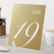 Ein elegantes, goldfarbenes Hochzeitsschild mit schlichtem, omber goldfarbenem Hintergrund und stilvollen Tischnummern. Ideal für moderne Rosa Themenhochzeiten und Fashion Events.