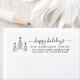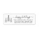 Elegante, moderne Schwarz-Weiß-Weihnachtsfamilien Rücksendeadressen-Aufkleber. Mit einem hübschen handgeschriebenen Drehbuch mit dem Sprichwort "fröhliche Weihnachten" im Swash-Schwanz-Schriftart, kiefern Bäume mit kleinen Herzen. Ideal für die Weihnachtszeit, einfach zu personalisieren mit Ihren Namen und Rücksendeadresse-Infos.